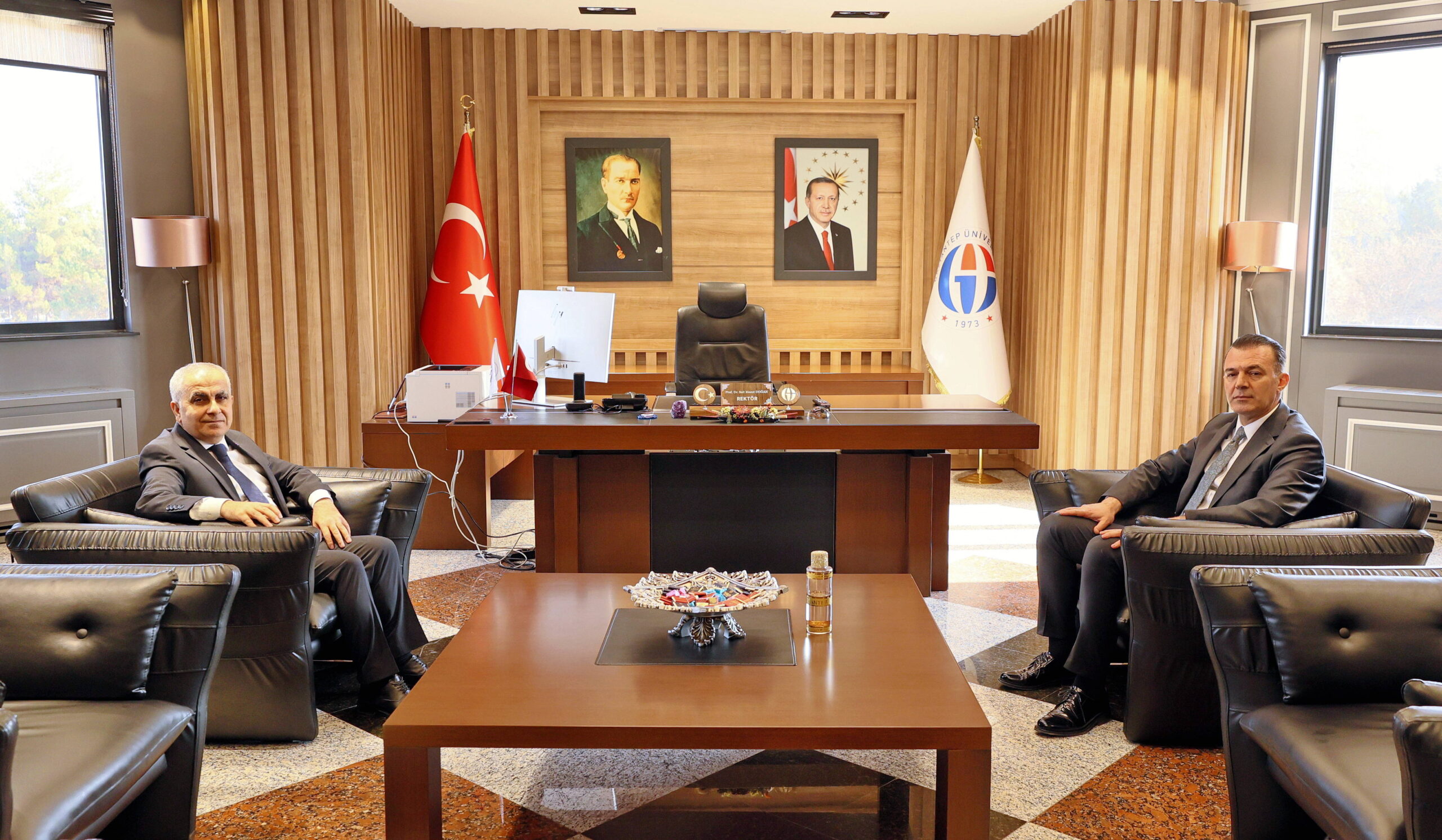 Afşin Belediye Başkanı Koray Kıraç, Gaziantep Üniversitesi (GAÜN) Rektörü Prof. Dr. Sait Mesut Doğan’ı makamında ziyaret etti. Ziyaretten duyduğu memnuniyeti dile getiren Rektör Doğan, Afşin Belediye Başkanı Koray Kıraç’a nazik ziyaretinden dolayı teşekkür etti. Afşin Belediye Başkanı Koray Kıraç ise ev sahipliği ve samimi karşılaması için Rektör Doğan’a teşekkür ederek, ziyaretten duyduğu memnuniyeti dile getirdi. Ziyaretin sonunda Başkan Kıraç, Rektör…