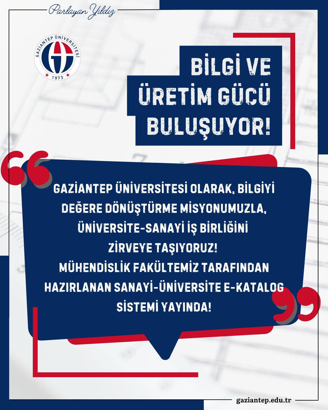 Gaziantep Üniversitesi (GAÜN), üniversite–sanayi–toplum iş birliğini güçlendirecek önemli bir adım atarak Mühendislik Fakültesi tarafından geliştirilen “Sanayi–Üniversite E-Katalog Sistemi”ni kamuoyuna duyurdu. Günümüzün hızla değişen bilimsel ve teknolojik ortamında, akademik bilgi ile sanayi üretim kapasitesinin daha etkin biçimde buluşturulmasını hedefleyen sistem, kolay erişim ve doğru eşleştirme prensibiyle çalışıyor. Dijital tarama motoruna sahip E-Katalog, sanayi kuruluşlarının fakülte bünyesindeki akademisyenlerin uzmanlık alanlarına hızlı ve…