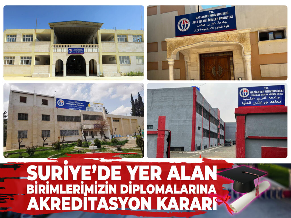 Suriye’de yer alan birimlerimiz Afrin Eğitim Fakültesi, Azez İslami İlimler Fakültesi, El-Bab İktisadi ve İdari Bilimler Fakültesi ile Cerablus Meslek Yüksekokulu’nda yürütülen eğitim programları kapsamında verilen mezuniyet diplomalarına yönelik akreditasyon kararı alındı.