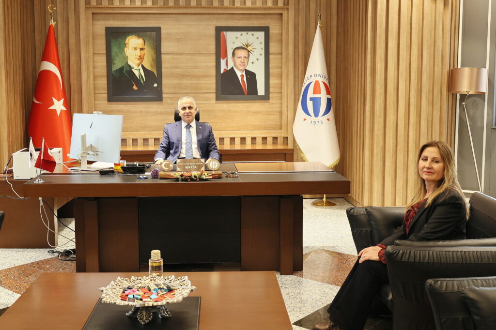 Gaziantep Üniversitesi Rektörü Prof. Dr. Sait Mesut Doğan, TÜBİTAK 1002 Hızlı Destek-A Programı kapsamında desteklenen “Tiyofen Halkası Taşıyan Yeni Hidrazit-Hidrazon Türevlerinin Aktivite Yönlendirmeli Olarak Tasarımı, Sentezi ve Antikolinesteraz İnhibisyon Özelliklerinin In Vitro ve In Siliko Yöntemlerle Belirlenmesi” başlıklı projenin yürütücüsü Prof. Dr. Ayşegül İyidoğan’ı makamında kabul etti.