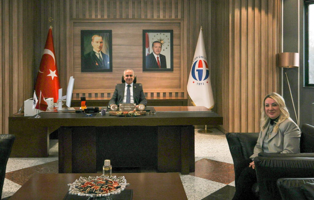 Gaziantep Üniversitesi (GAÜN) Rektörü Prof. Dr. Sait Mesut Doğan, Sağlık Bilimleri Fakültesi Ebelik Bölümü öğretim üyesi Dr. Öğr. Üyesi Esra Verim’in yürütücülüğünü üstlendiği ve Avrupa Birliği tarafından hibe almaya hak kazanan “Sürdürülebilir Sağlık: Atık Toplayıcıları ve Aileleri İçin Sağlığı Geliştirme Programı” başlıklı proje kapsamında makamında kabul etti.