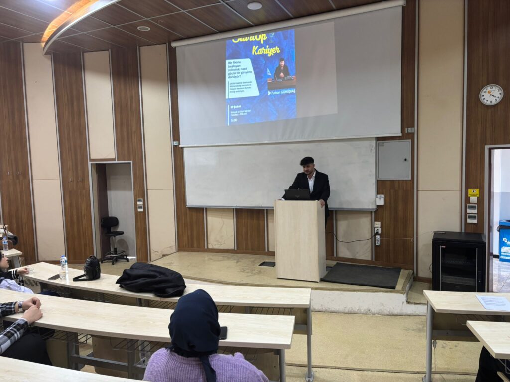 Gaziantep Üniversitesi (GAÜN) Kariyer Topluluğu tarafından düzenlenen StartUp Kariyer etkinliği, Füzion Akademi Kurucu Ortağı Furkan Gümüşbaş’ın katılımıyla İktisadi ve İdari Bilimler Fakültesi’nde gerçekleştirildi.