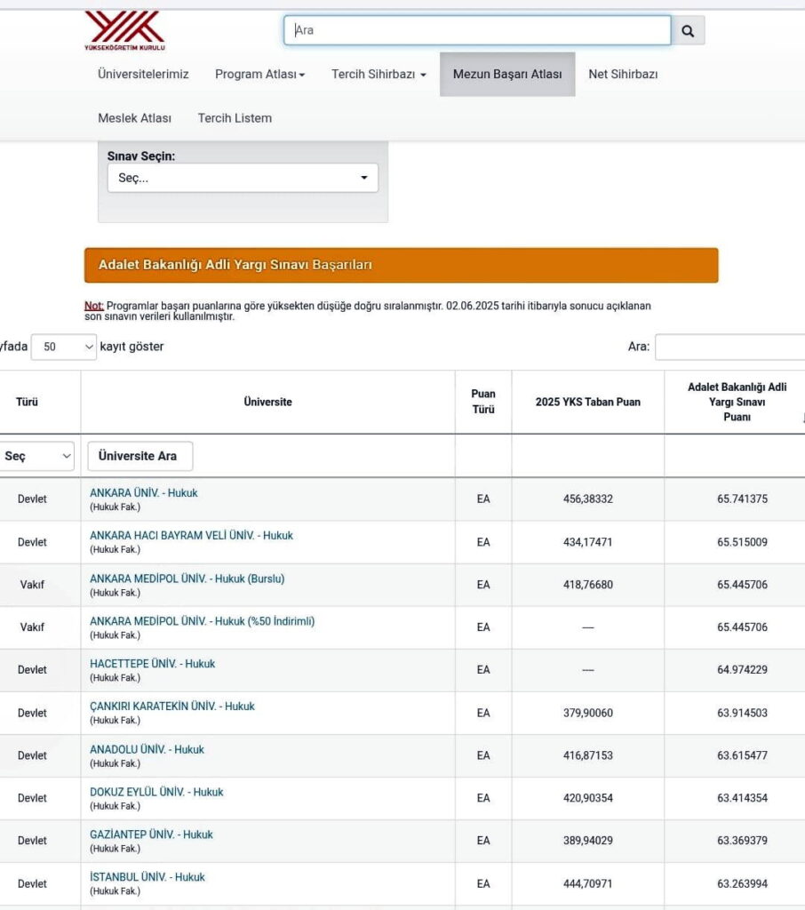 Aralık 2025 Adli Yargı Sınavı sonuçlarına göre ayrıca fakülte mezunlarından bir öğrencinin yaklaşık 16 bin aday arasından 35’inci olması da dikkat çekti.