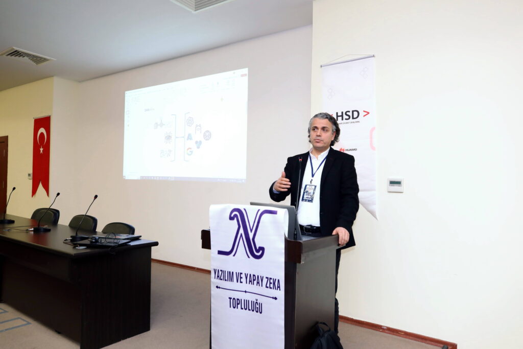 Gaziantep Üniversitesi (GAÜN) Yazılım ve Yapay Zeka Topluluğu ile Huawei Student Developers iş birliğiyle düzenlenen “Sanayide Yapay Zeka ve Uygulamaları” etkinliği, Mühendislik Dekanlığı Konferans Salonu’nda gerçekleştirildi.