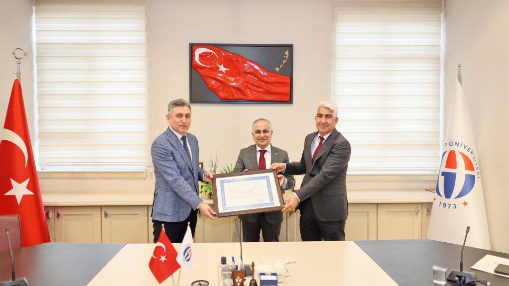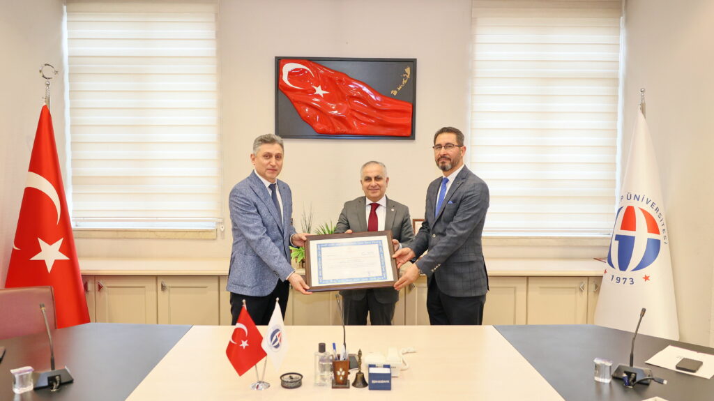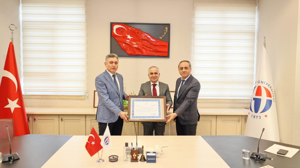 GAÜN Senato Salonu’nda gerçekleştirilen törende, Gaziantep İl Sağlık Müdürü Dr. Beytullah Şahin, belgeleri GAÜN Rektörü Prof. Dr. Sait Mesut Doğan ve ilgili birim amirlerine takdim etti.