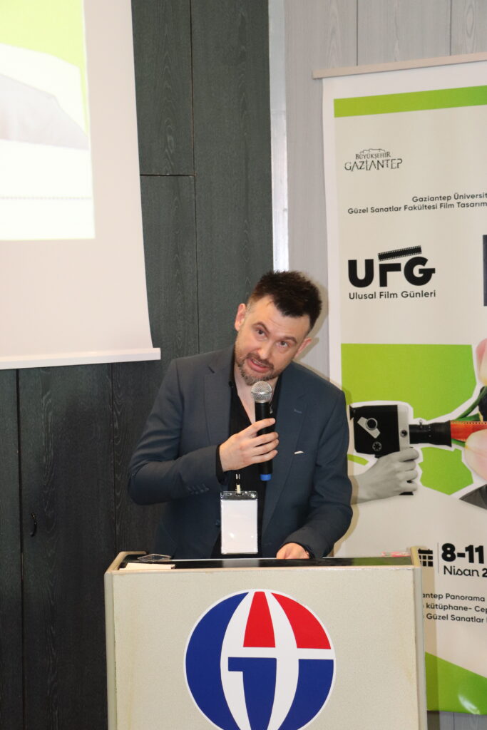 Açılış konuşmaları sonrasında GAÜN Güzel Sanatlar Fakültesi öğretim üyesi Prof. Dr. Devrim Özkan, sinemanın modern bir sanat olarak geleceğini ele alan “Zamanı İşleyen Bir Modern Sanat Olarak Sinema ve Geleceği” başlıklı sunumunu gerçekleştirdi.