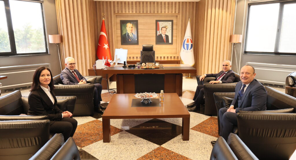 Gaziantep Üniversitesi (GAÜN) Rektörü Prof. Dr. Sait Mesut Doğan, Zielona Góra Üniversitesi Rektörü Prof. Dr. Hab. Wojciech Strzyzewski, Şansölye Katarzyna Lasinska ve Erasmus Kurum Koordinatörü Prof. Dr. Marek Smoluk’u makamında ağırladı.