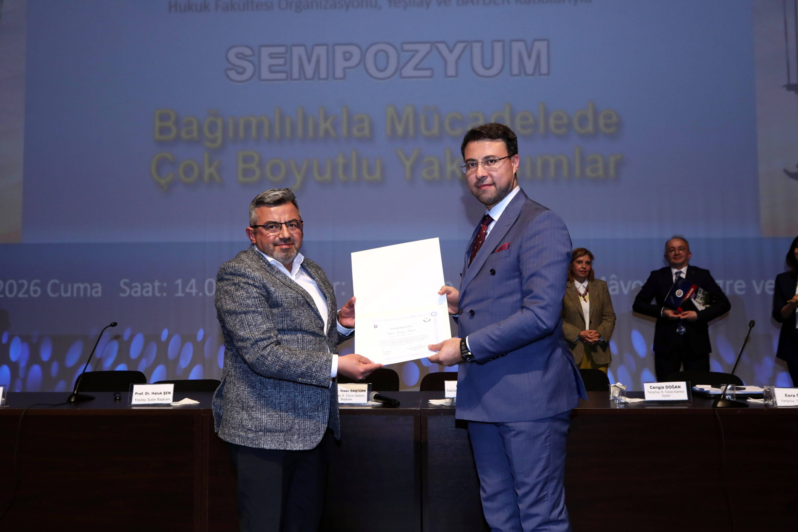 İki oturum halinde gerçekleştirilen programın ilk oturumu “Bağımlılığın Önlenmesinde Kararlılık” başlığıyla yapıldı. Oturum başkanlığını Yargıtay 8. Ceza Dairesi Başkanı Doç. Dr. İhsan Baştürk üstlenirken, oturumda Yargıtay 8. Ceza Dairesi Üyesi Cengiz Doğan, Yargıtay Tetkik Hâkimi Esra Özcan, Gaziantep Cumhuriyet Savcısı Uğur Ateş, BAYDER Genel Başkanı Regaip Bostan ve Yeşilay Şube Başkanı Prof. Dr. Haluk Şen konuşmacı olarak yer aldı. Katılımcılar, uyuşturucu madde bağımlılığıyla mücadelede ceza hukuku araçları, suçun tekrarının önlenmesi, denetimli serbestlik uygulamaları ve maddeye erişimin engellenmesine yönelik çözüm önerilerini ele aldı.