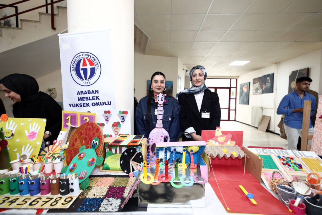 Gaziantep Üniversitesi (GAÜN) Araban Meslek Yüksekokulu (MYO) Çocuk Gelişimi Bölümü öğrencileri tarafından hazırlanan “3. Eğitimde Araç ve Gereç Sergisi”, Güzel Sanatlar Fakültesi Fuaye Alanı’nda açıldı.
