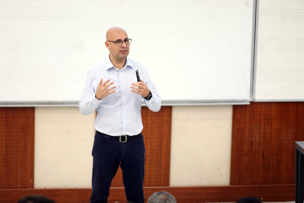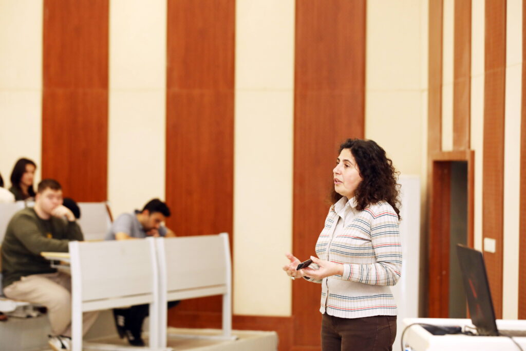 Prof. Dr. Jorge Costa ise “Biyokimyasal Enerji Üretim Yolları” başlıklı dersinde biyokütle, yenilenebilir enerji kaynakları, biyoenerji üretim süreçleri ve enerji dönüşüm teknolojileri hakkında değerlendirmelerde bulundu. Costa, sürdürülebilir enerji üretimi ve döngüsel ekonomi yaklaşımı çerçevesinde yürütülen uluslararası çalışmalardan örnekler paylaştı.