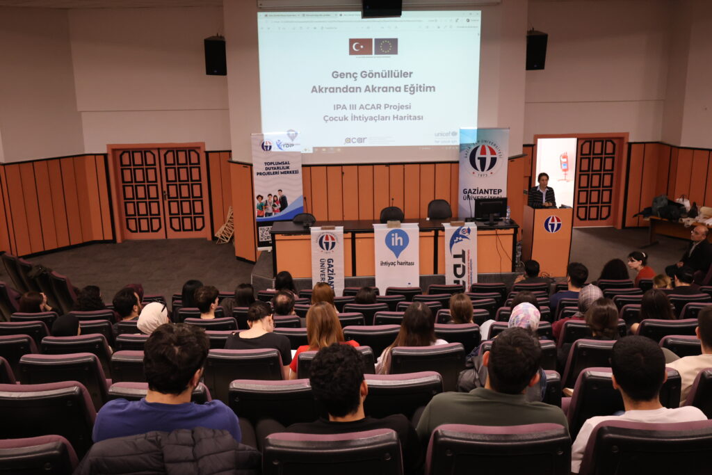 Gaziantep Üniversitesi (GAÜN) Toplumsal Duyarlılık Projeleri Merkezi (TDP) tarafından, Avrupa Birliği finansmanıyla UNICEF Türkiye koordinasyonunda yürütülen “Çocuklar için Hesap Verebilirlik, Haklar için Savunuculuk (ACAR) Projesi” kapsamında üniversite öğrencilerine yönelik eğitim programı düzenlendi.