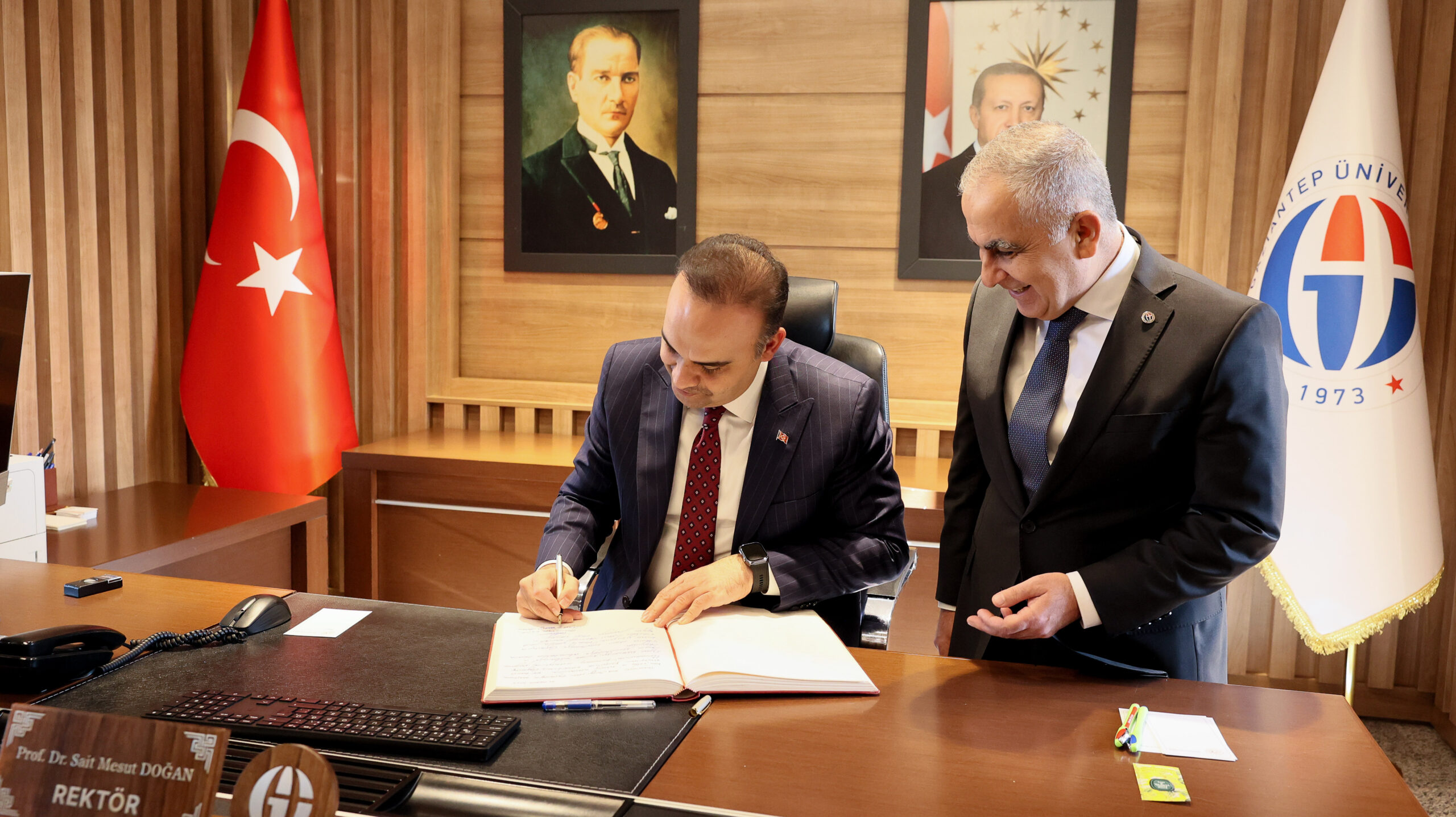 Sanayi ve Teknoloji Bakanı Mehmet Fatih Kacır, Gaziantep Üniversitesi Rektörü Prof. Dr. Sait Mesut Doğan’ı makamında ziyaret etti. Gaziantep Üniversitesi Rektörlük Makamı’nda gerçekleşen ziyarette; Gaziantep Valisi Kemal Çeber, Gaziantep Milletvekili Abdülhamit Gül, Gaziantep Büyükşehir Belediye Başkanı Fatma Şahin ile diğer protokol üyeleri yer aldı. Ziyaret kapsamında Bakan Kacır, Gaziantep Üniversitesi Şeref Defteri’ni imzaladı. Bakan Kacır, şeref defterine şu ifadeleri yazdı:…